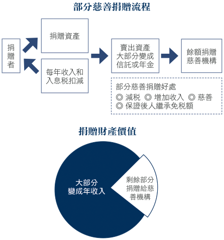 部分慈善捐贈是把財產分成收入部分和捐贈部分, 常見的有下面幾種: