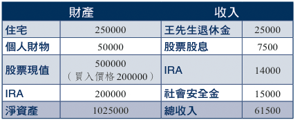 我有一位客戶, 王先生和太太夫妻都是 70 歲,有如下資產: